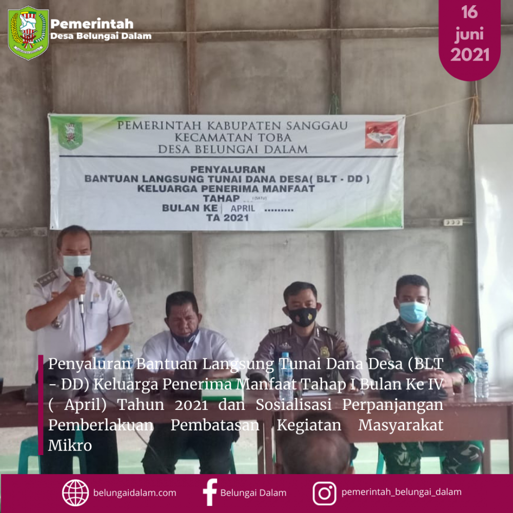 Pembagian BLT DD Tahap Ke I Bulan Ke IV (April) 2021 dan Sosialisasi Perpanjangan PPKM Mikro Desa Belungai Dalam