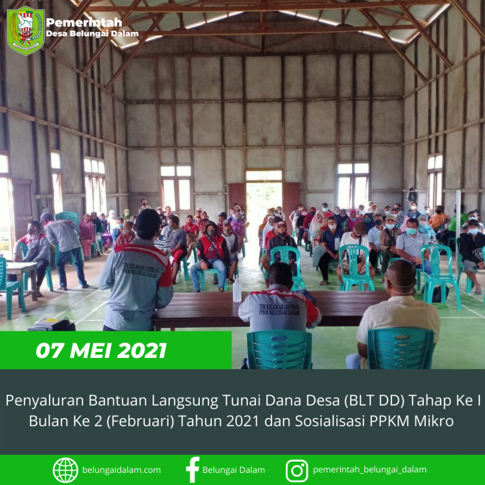 Pembagian BLT DD Tahap Ke I Bulan Februari 2021 dan Sosialisasi PPKM Mikro Desa Belungai Dalam