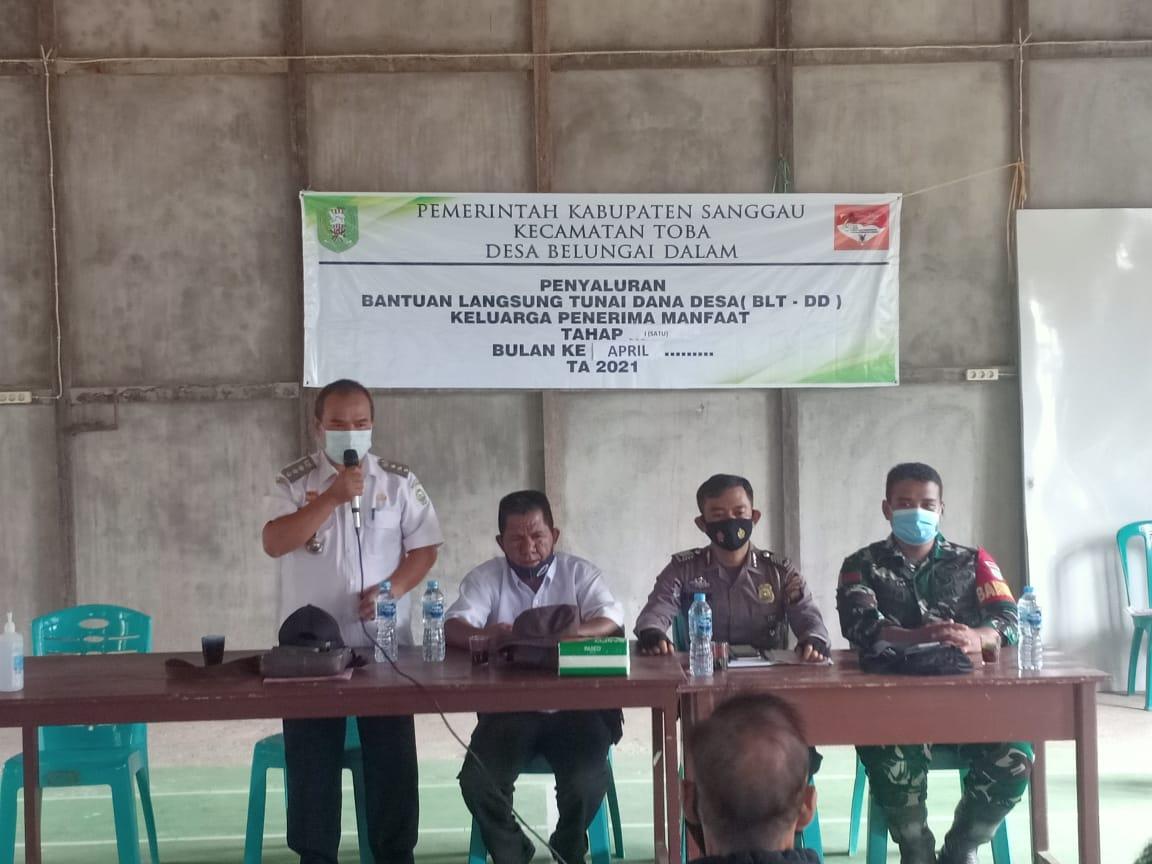Rabu, 16 Juni 2021 bertempatan di gedung pertemuan belungai dalam, dilaksanakan Penyaluran Bantuan Langsung Tunai Dana Desa (BLT DD) Tahap I (Satu) Bulan Ke IV April dan Sosialisasi Perpanjangan PPKM Mikro Desa oleh Camat Toba. Pada kesempatan kali ini, di hadiri KPM (Keluarga Penerima Manfaat), Kepala Desa, Anggota BPD, Pendamping Desa, BABINSA, BABINKAMTIBNAS, Perangkat Desa, Relawan Covid-19, TIM PPKM Desa Belungai dalam . Bukan hanya sekedar pembagian BLT DD yang dilakukan pemerintah desa belungai dalam. Pada kesempatan kali ini, Camat Toba juga mensosialisasikan tentang Perpanjangan PPKM Mikro kepada semua KPM yang berada di Gedung Pertemuan. Dalam penyampaiannya beliau berpesan kepada seluruh KPM dan Tamu undangan untuk menyampaikan kepada keluarga dan kerabat mengenai kebijakan tentang Perpanjangan PPKM Mikro berdasarkan keputusan Gubernur Kalimantan Barat Nomor: 280/KESRA/2021 Tentang PPKM Berbasis Mikro Tingkat Desa dan Kelurahn, serta Keputusan Bupati Sanggau Nomor 258 Tahun 2020 Tentang Penetapan Status Keadaan Darurat Bencana Wabah Penyakit Akibat Virus Corona yang dimulai dari Tanggal 15 Juni 2021 sampai dengan 28 Juni 2021 (14 Hari). Selain itu juga, tidak lupa beliau menghimbau tetap selalu mematuhi protokol kesehat dengan menerapkan 5M.