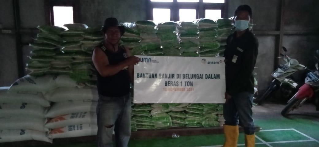 PT. ANTAM menyalurkan bantuan bagi warga yang terdampak bencana banjir di dusun belungai dalam di Posko penangana bencana banjir. terdapat 1 ton beras (1000 Kg) yang disalurkan PT.ANTAM kepada pemerintah desa belungai dalam, yang diterima langsung oleh Kepala Desa Belungai Dalam (13/Nov/2021).